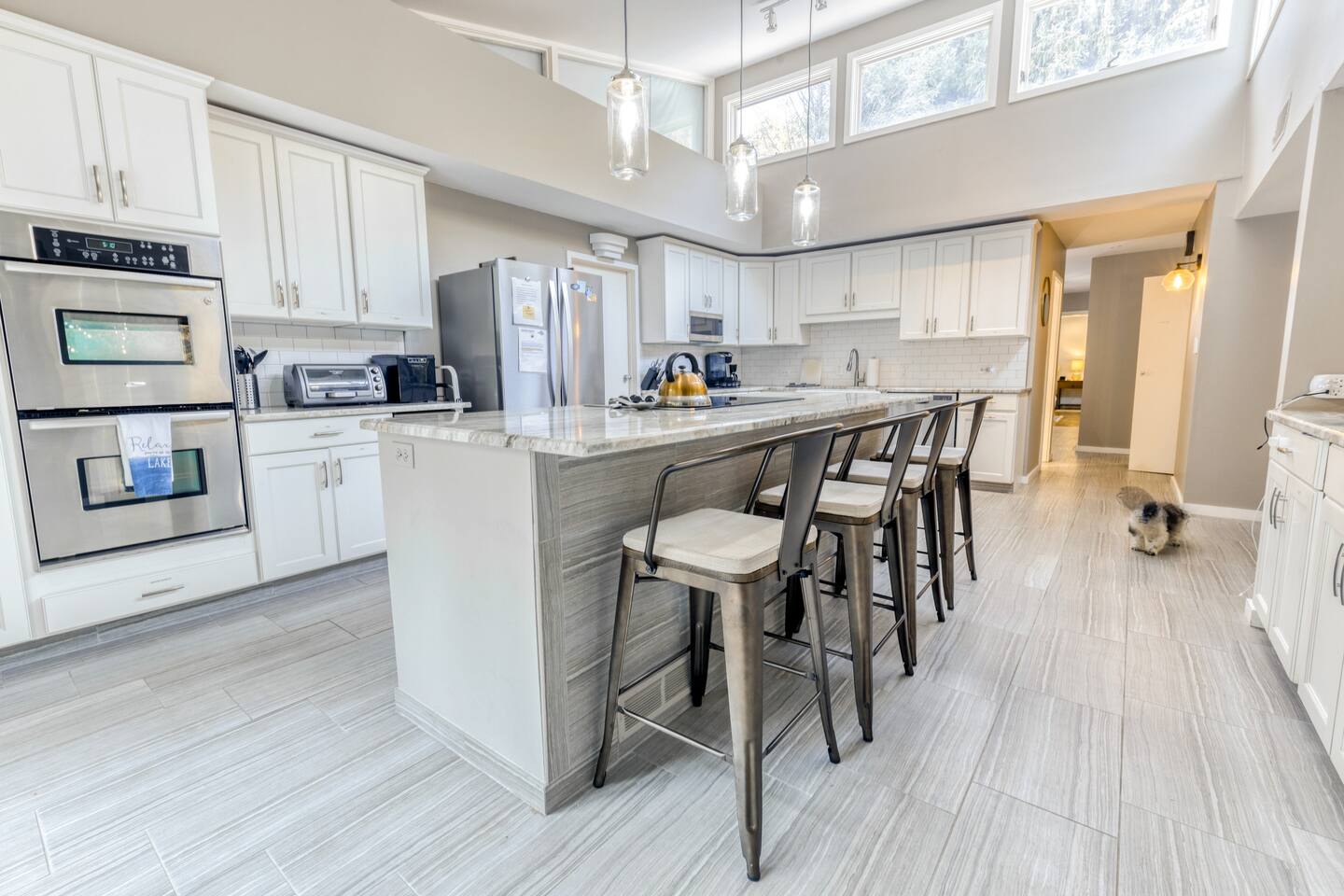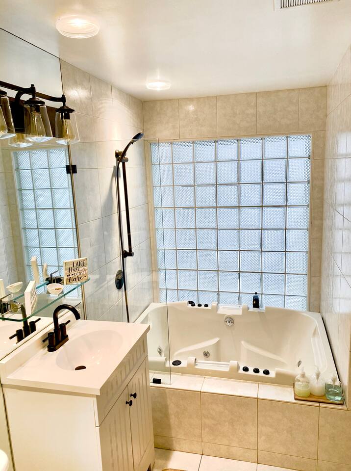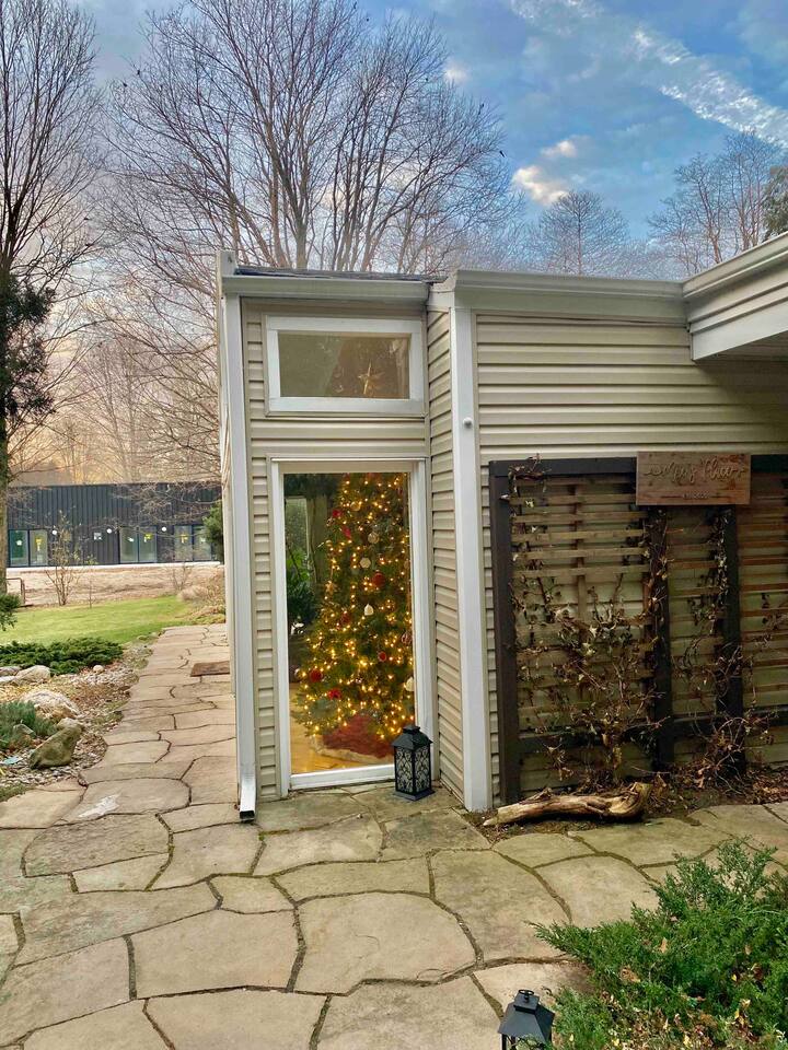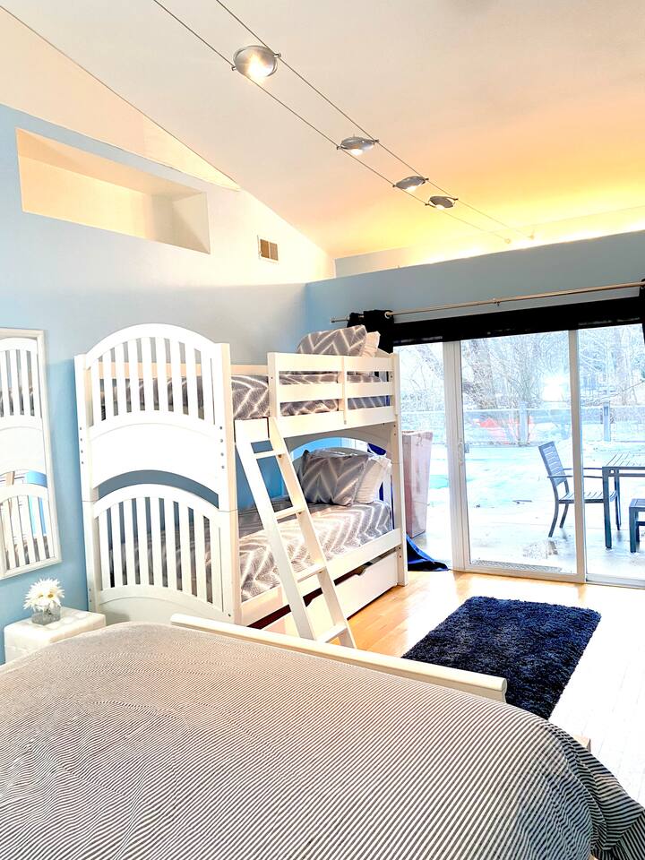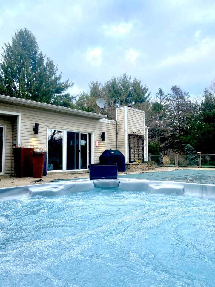 This 3 bedroom, 2 bathroom, single-story home is designed to accommodate everyone and has an array of amenities to choose from. Experience the beauty of Southwestern Michigan surrounded by professionally landscaped land and woodland animals. Cooking enthusiasts will enjoy the gourmet kitchen outfitted with double ovens and bountiful cooking supplies, perfect for utilizing the Weber grill. Our home is also on the wine trail for those looking for a weekend of wine tasting. Cyclists will find the best bike trails, and outdoorsy folks are minutes from an array of activities, from hiking to kayaking to SUPing. Hunters and fishermen will find prime locations near our home or walk to one of the many secluded beaches of Harbert and soak up the sun in a peaceful, serene environment. Antiquing fanatics will have numerous shops to explore. Everyone can enjoy the hot tub that’s open year-round and heated pool, open from Memorial Day through mid-October. Kids will love all the board games to choose from as well as the 65" premium flat screen tv & even karaoke!