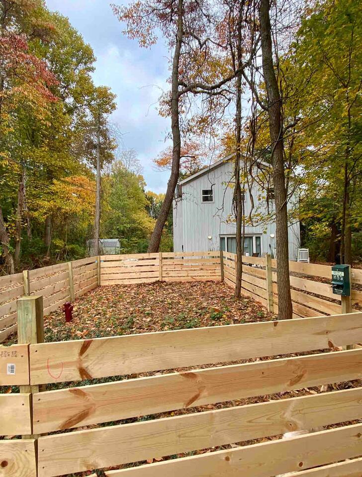 Guests can access white barn-house, front yard and driveway immediately outside the home. It is nearly a third of an acre of private space! But guests may not trespass over tan or gray homes on either side of the barn or their backyards/driveways. All are private property and trespassers may be prosecuted